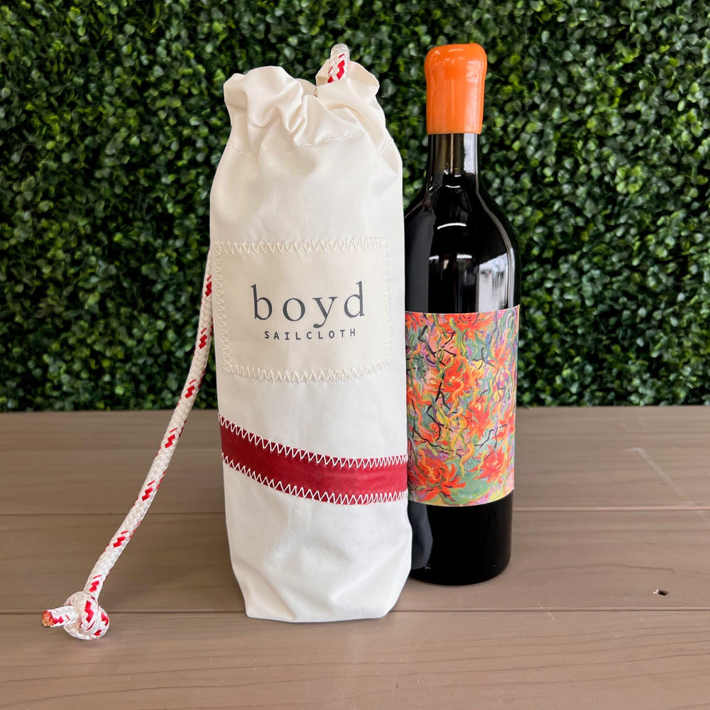 Because our bags are hand made in-house in limited runs, we can offer a custom sailcloth label that beautifully represents your brand or event. These are printed on the same recycled sailcloth as our bags and then is hand sewn onto the bag, hat or even wine tote.